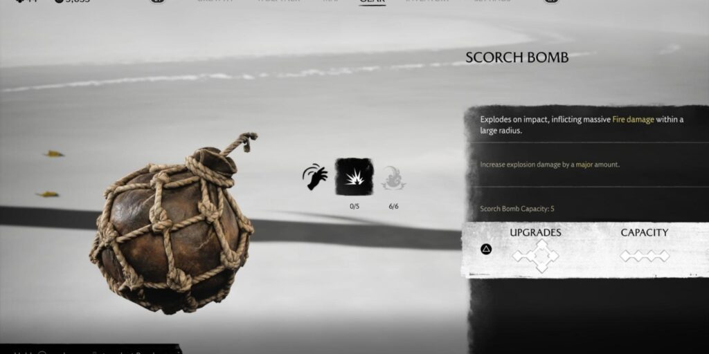Altered scorch bombs cause additional explosive damage for 300 coins and 10 black powder. The reinforced scorch bomb increases the burning damage and duration for 550 coins, 20 black powder, and 5 Oni Raider Mask pieces. The enhanced scorch bomb increases the explosion radius for 1000 coins, 30 Black Powder, and 10 Oni Raider Mask Pieces. Finally, the perfected scorch bomb massively increases its explosion damage for 2500 coins, 20 oni raider masks, and 10 rare wood.