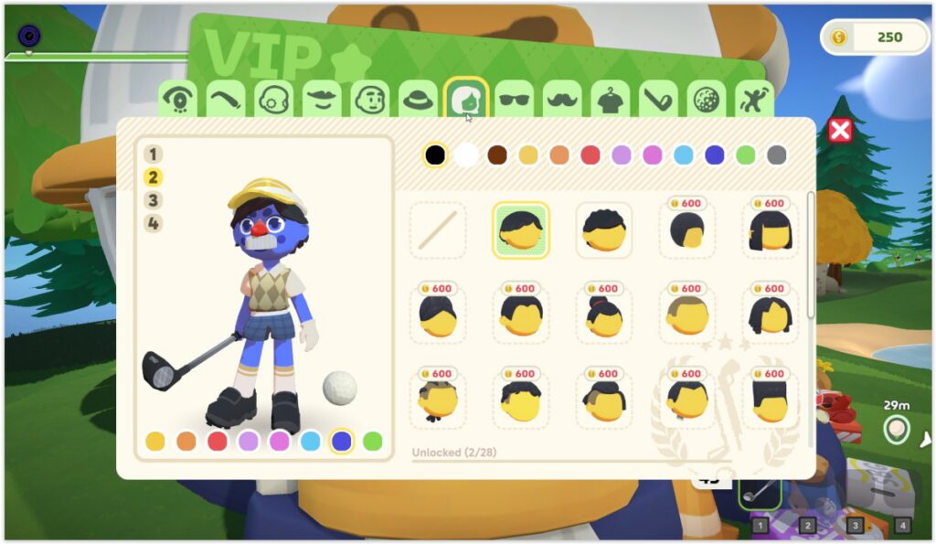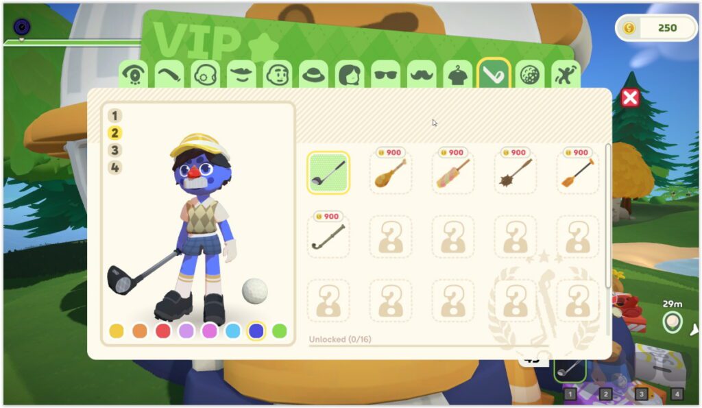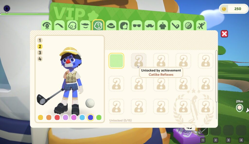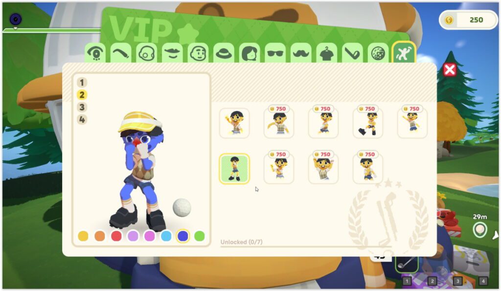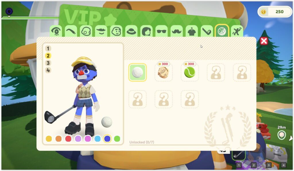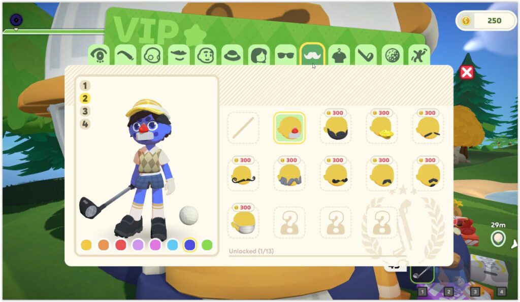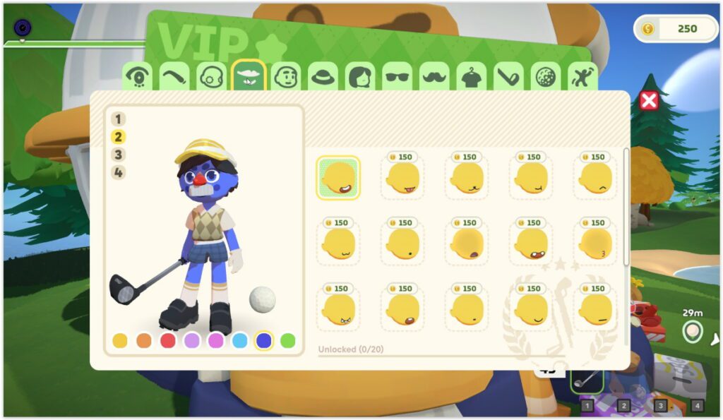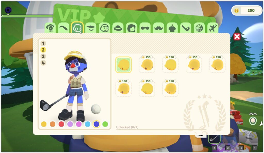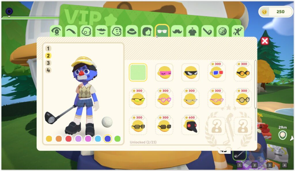 Super Battle Golf customization shop lets you choose from a wide range of options spread across 12 categories. Some of these are eyebrows, facial expressions, eyewear, headgear, hairstyle, mustache and beards, emotes, and costumes. Each category has multiple styles, which gives you the freedom to mix and match. This means even if you have not unlocked every item yet, you can still combine multiple items to create a truly unique look.